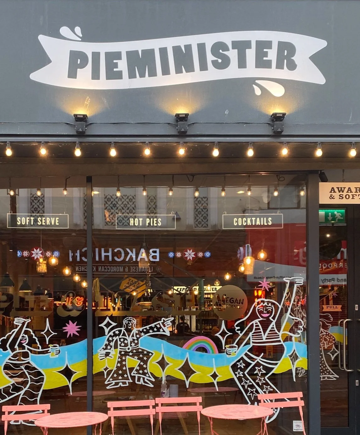 A Joyful and eye-catching window for Pieminister Liverpool to celebrate Eurovision, which also highlighted Pieministers Eurovision themed cocktail. The concept came from the fun energy that the historic competition brings, inspiring a colour bursting dancing scene.